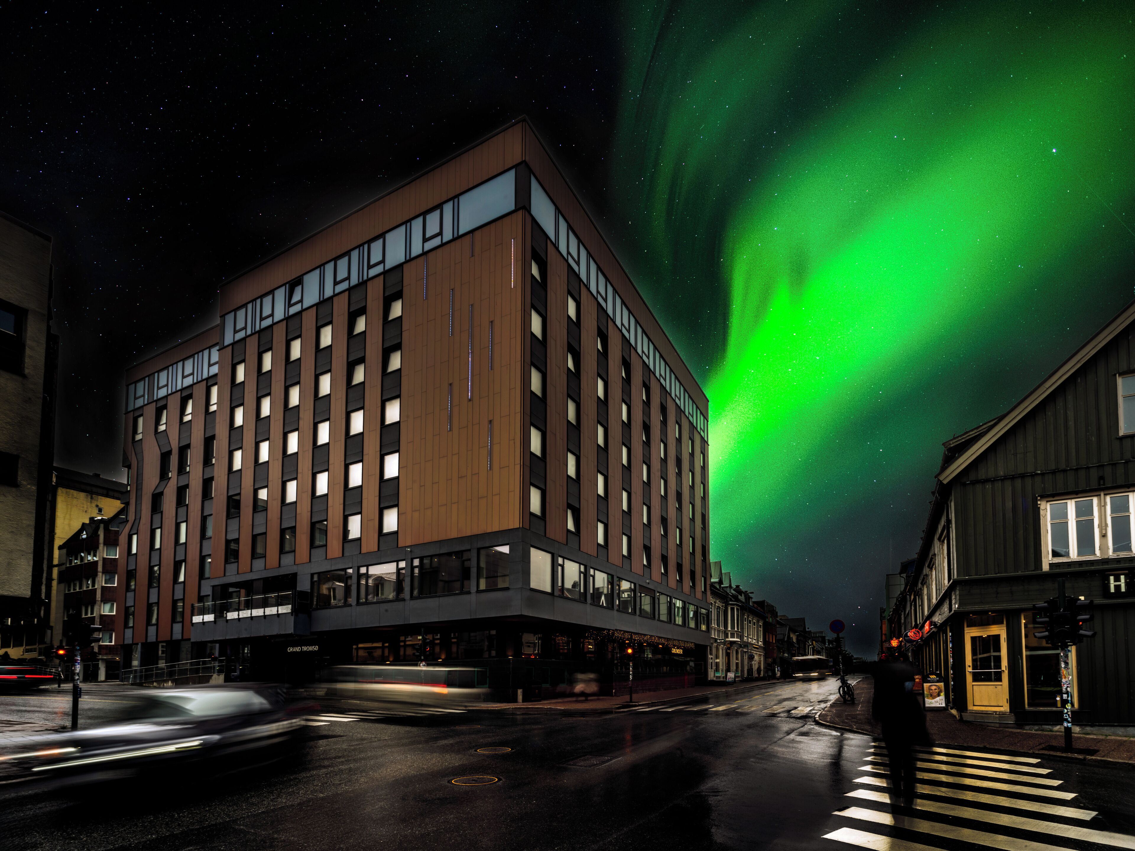 Located on Storgata shopping street in central Tromsø this modern hotel offers a large breakfast buffet and an in-house café and bar. The colourful rooms include comfortable beds and free WiFi. Each of Quality Hotel Grand Tromsø's rooms features wooden flooring a minibar and a flat-screen TV. Some rooms have seating areas and sound systems that can link to smartphones and tablets.The in-house café and bar serves lunch and free tea and coffee are available in the lobby. Quality Hotel Grand Tromsø also has a popular bar.Northern Lights tours can be arranged at reception. Attractions such as the Polar Museum and the Arctic Church are both within 10 minutes' walk. The airport bus stops right outside the hotel.
